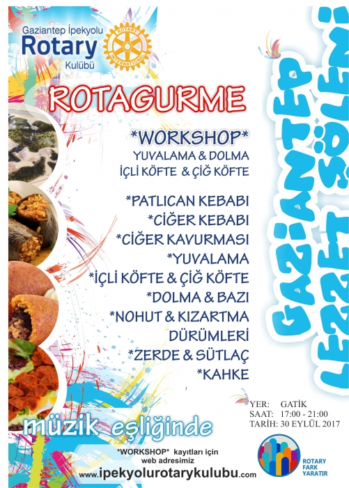 17:00 de Şölen alanımız olan Gaziantep Tenis İhtisas Kulübünde Müzik eşliğinde Yöresel lezzetlerimizden tatma imkanı en önemlisi Workshop etkinliğimizde